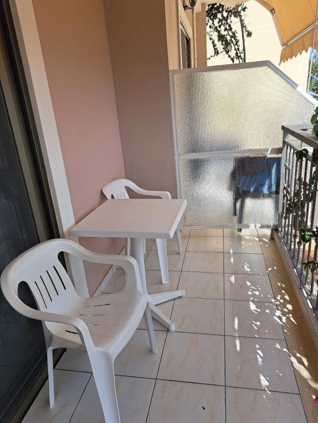 Priamo pri piesoÄŤnato-okruhliakovej pláži. LeĹľadlá a slneÄŤnĂky na pláži za poplatok.